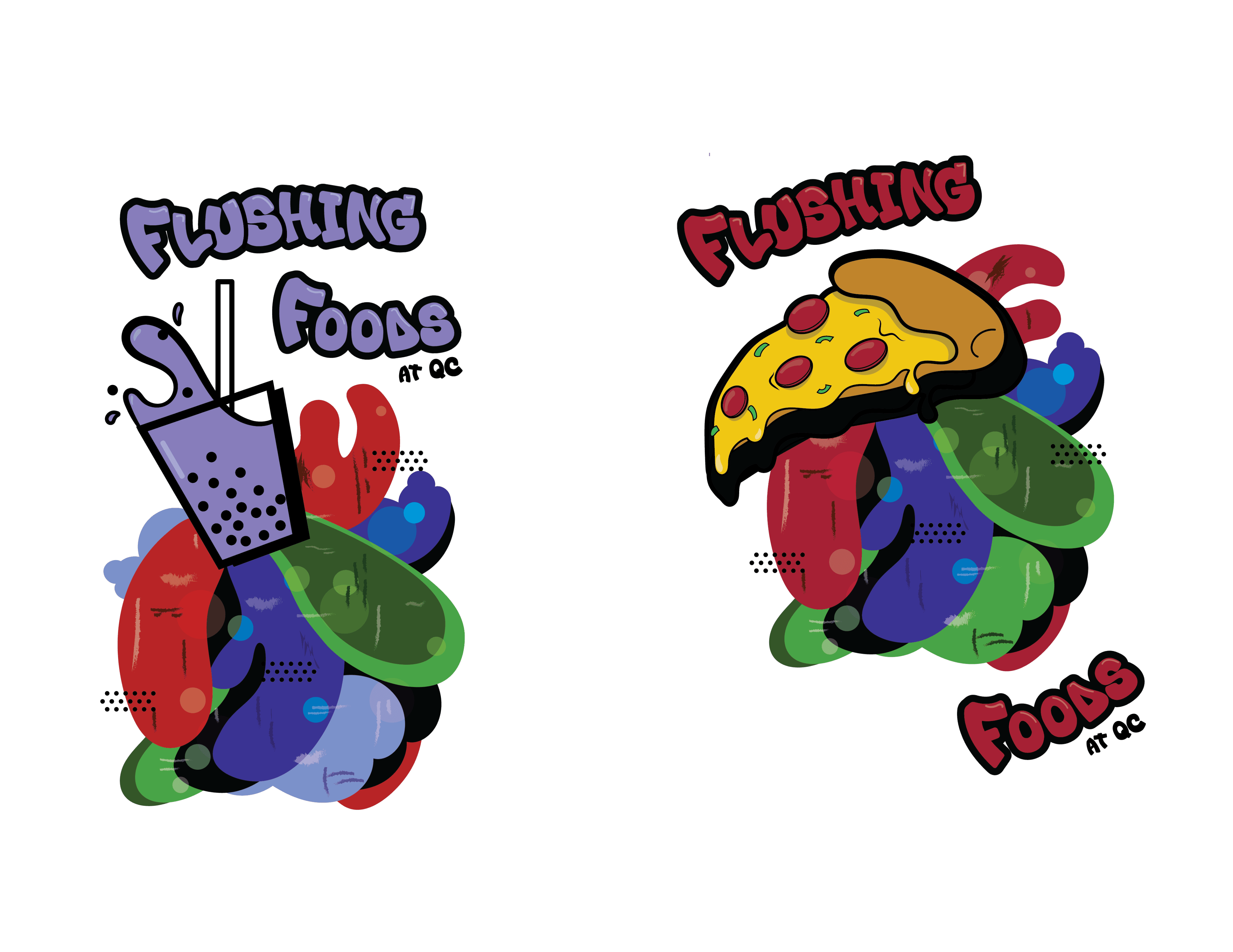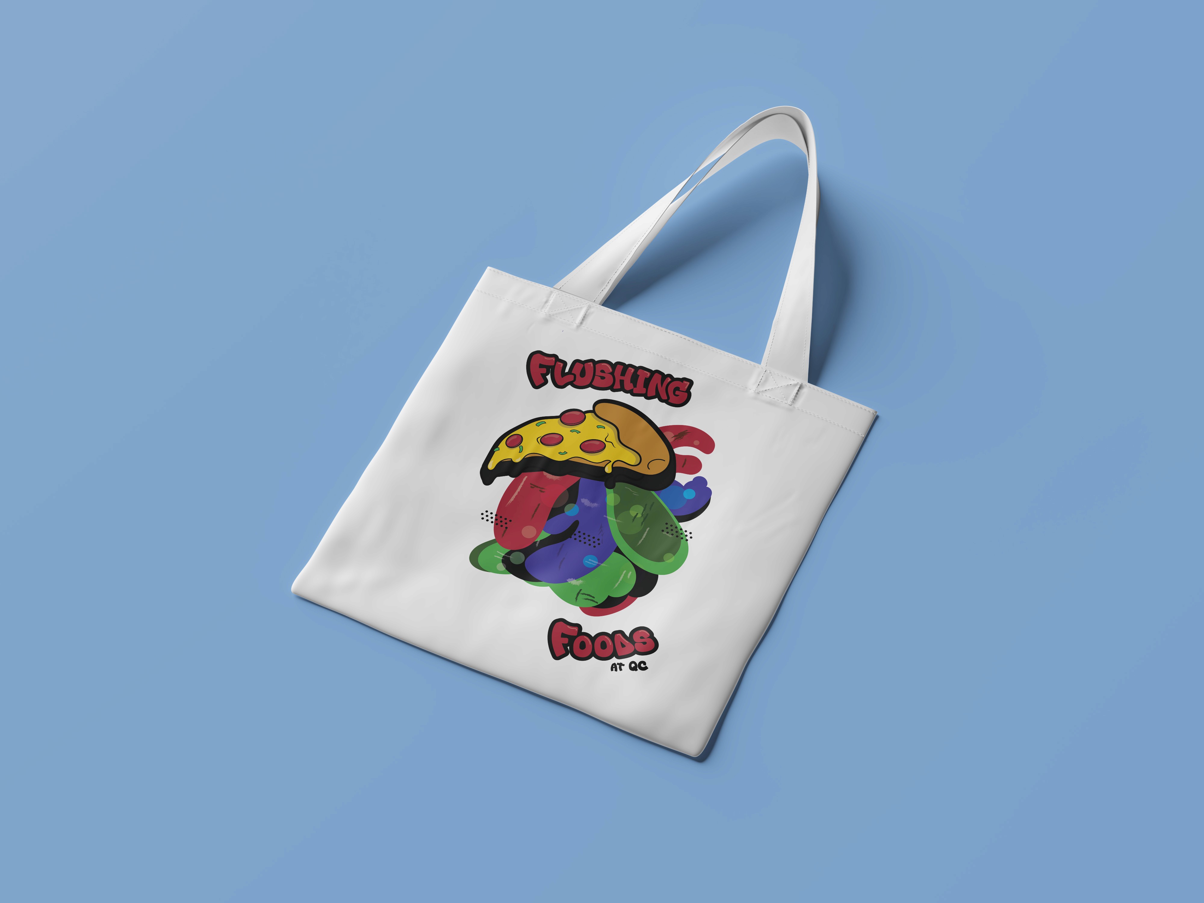 I designed new graphics to apply to merchandise to promote Queens College in a cool, fun way for prospective and existing students. Through various research and ideation methods, I created my designs under the theme of ‘Flushing Foods.’ I derived inspiration for my designs through street art and streetwear, things popular among college-age students.